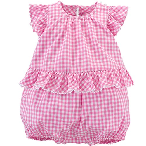 -. Title : Baby Girls Gingham Romper Pink/White
