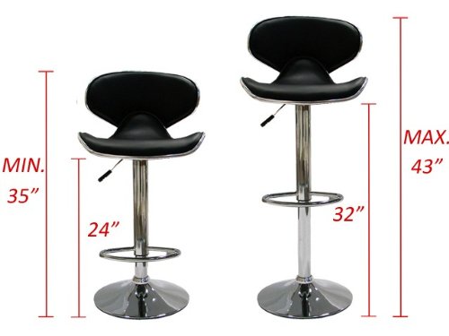 -. Feature : Stylish Synthetic leather Modern design.Package contains (2) barstools. / Color: White, Black, Cafe Latte Beige, Coffee Brown / Swivels 360 degrees.Pneumatic adjustable height.Chrome base.Rubber ring bottom to prevent floor from scratching. / Specifications: Base width: 15". Height Adjustment: 24" to 32". Seat Width: 18".