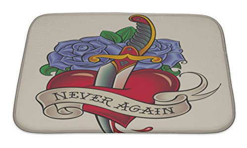 Gear New No Slip Microfiber Memory Foam Old School Tattoo Dagger Through Heart Bath Rug Mat, 24" X 17"
