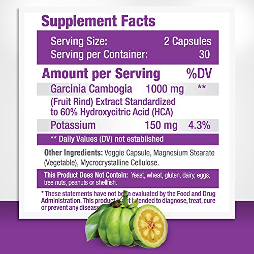 **BLOCK and BURN Fat All Day - Even While You Sleep!** Lose Up to 10 lbs in 4 Weeks...Without More Exercise! It's Nature's Obesity Cure! Garcinia Cambogia is a natural fruit, but the EXTRACT is like a MIRACLE! - BLOCKS FAT formation by turning food straight into ENERGY! (The "glycogen" principle) - Helps suppress your appetite - keeps you from over-eating! - Stops "emotional eating" and "food binges"! Controls your sugar cravings! - Targets your belly fat by fighting Cortisol (the "stress" hormone we struggle with) - Mood-Lifter! Increases Serotonin levels (the "feel good" hormone we love) - Break through weight-loss "plateaus" - burn body fat hour after hour! Garcinia Cambogia with Potassium enables your body to actually SHRINK your FAT CELLS. You'll slim down and lose two dress sizes SO FAST! Blocks the enzyme that turns food into FAT. Turns it into ENERGY instead! You'll suddenly have LEAN MUSCLE MASS, able to burn more calories, hour by hour! But not all Garcinia Cambogia Extract products are created equal! You need to use the OPTIMUM AMOUNT: 60% HCA extract - in combination with Potassium for better ABSORPTION. You'll notice a BIG difference in how you look and feel, in just 7 to 10 days! Also helps lower your total cholesterol by 10-30%! Our Promise: We only sell the highest quality, 100% pure Garcinia Cambogia Extract! Our capsules do not contain fillers, binders, or artificial ingredients. Best of all, we've packed the highest concentration of HCA extract available. Ours contain a whopping 60% HCA extract! It comes in a convenient 500mg capsule size. Not too big. Others are like trying to swallow an M&M candy! Too painful! We're so confident that you'll LOVE our product, we back it up with a full refund - even if you return an empty bottle! **Don't wait! Click "Add to Cart" and start losing weight already!**Feature