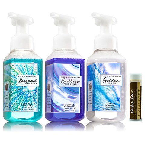 -. Title : BERGAMOT WATERS, ENDLESS WEEKEND & GOLDEN SANDS Bath & Body Works Pack of 3 Gift Set of Gentle Foaming Hand Soap with a Jarosa Chocolate Bliss Lip Balm by Jarosa Gifts