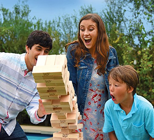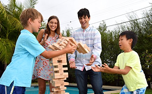-. Feature : The only authentic oversized hardwood Jenga game specifically designed for kids ages 6 and up (and their families) / 54 precision-cut, high quality, smoothly polished, hardwood blocks / At setup, starts at 18 inches high and safely stacks to over 3 feet high in play! / All the fun of Classic Jenga and more exciting, because it's BIGGER!