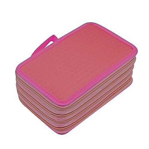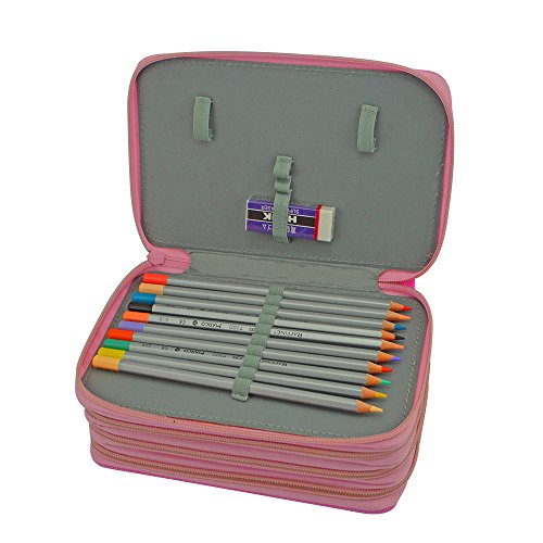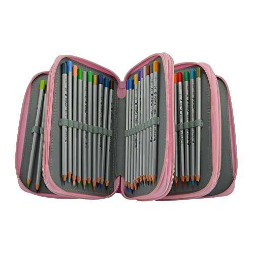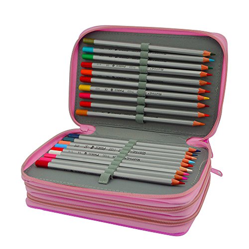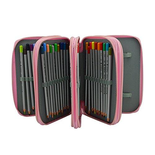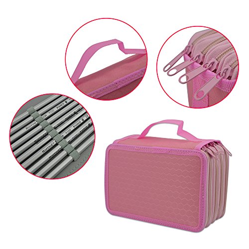 72 Slots Pencil Case Professional 4 Layers and 4 Zippers,Anti-drop and Anti-shock Sketch Fill-color Pencil Case with Lots of Compartments Colors Pen Bag for Painting (pink)