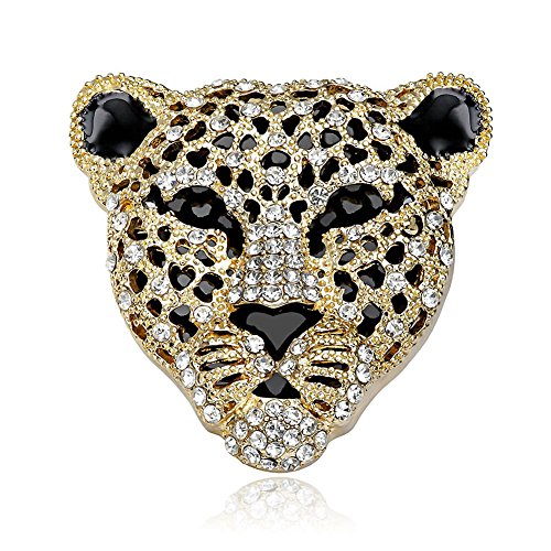 -. Title : OUDUO Women's Metallic Leopard Head Brooch Artificial Crystal Pin Accessaries Gold