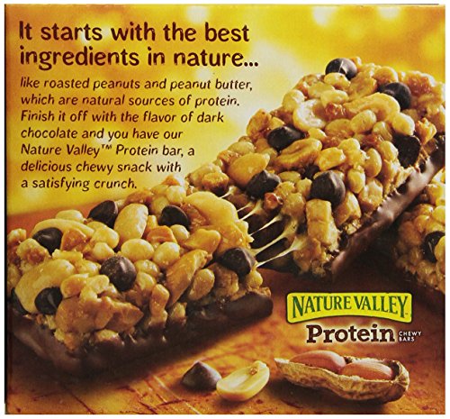 -. Binding : Grocery -. Brand : Nature Valley -. EAN : 0016000457232 -. Feature : 57% of people looking for protein / Consumers love the taste / At 10mg of protein it has the highest protein level in the grain aisle -. Label : Nature Valley -. Manufacturer : Nature Valley -. Model : 45723 -. MPN : DCS-3674 -. PackageQuantity : 1 -. PartNumber : DCS-3674 -. ProductGroup : Grocery -. ProductTypeName : GROCERY -. Publisher : Nature Valley -. Size : 5 EA -. Studio : Nature Valley -. Title : Nature Valley Protein Chewy Bars - Peanut Butter Dark Chocolate - 7.1 oz - 5 ct -. UPC : 016000457232
