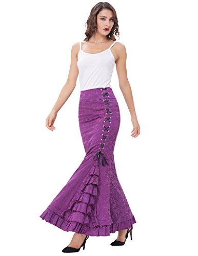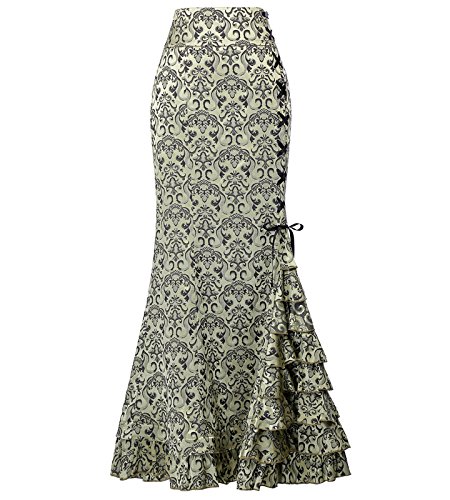 Victorian Fishtail Ruffle Skirt, Jacquare design, Corset style lace down design with ruffles cascading through slit