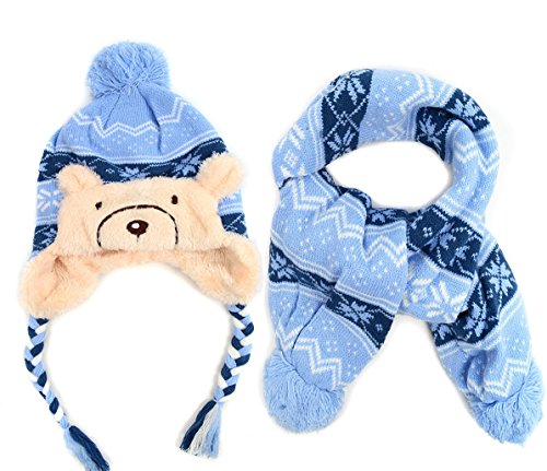 (Foemo)/Accessories/Hats/DIRECT FROM USA/Foemo Kid's Hat/Scarf Set - Faux Fur Lined Bear Hat Pom Pom Scarf - Warm