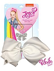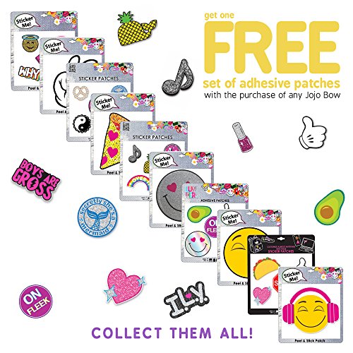 Inspired by the dancing star JoJo Siwa's iconic big bow style, this hair bow and necklace set makes a vivid, bright, and fun addition to your little one's accessories collection. The bow is attached to a metal salon clip that makes it easy to wear and keeps it in place throughout the day. The necklace ribbon pendant is adorned of shiny yet durable materials which create a brightly elegant look that will stand up to plenty of use. This large-size hair bow allows your little girl to flaunt her carefree and bold style and makes her stand out from the rest. Each JoJo Siwa bow purchase include a free 5 piece set of adhesive patches with colorful, cute designs that your child will love! Get your kid a Jojo Siwa bow collection to make her style even better! 0