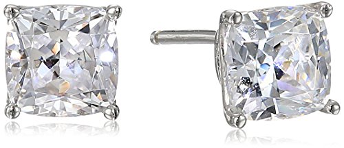 -. Title : Platinum-Plated Sterling Silver Swarovski Zirconia Cushion-Cut Stud Earrings (2 cttw)