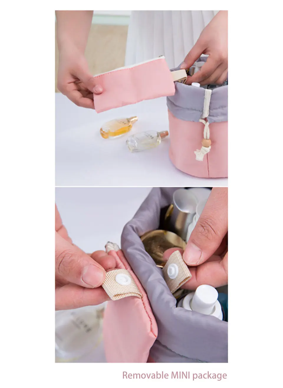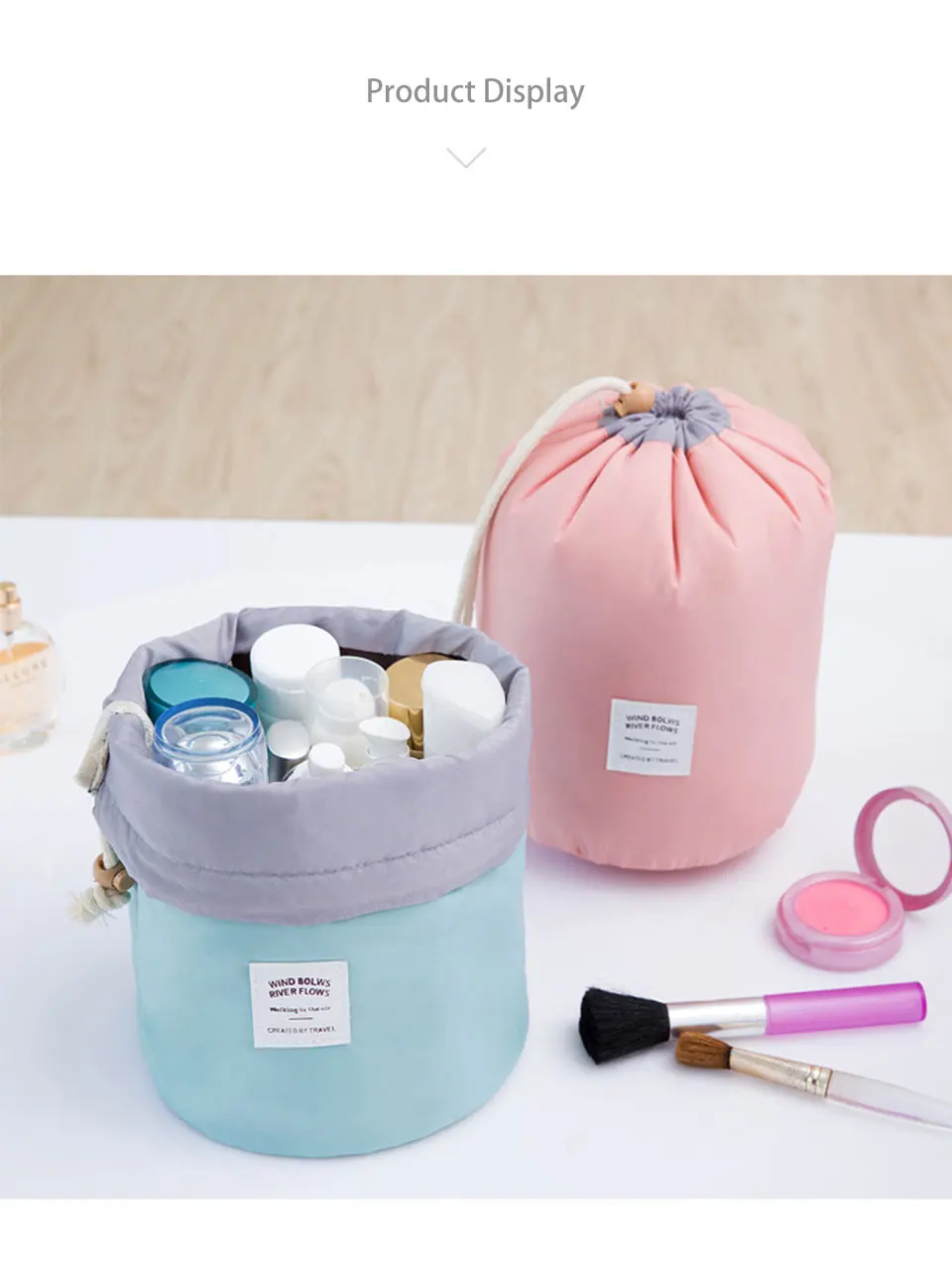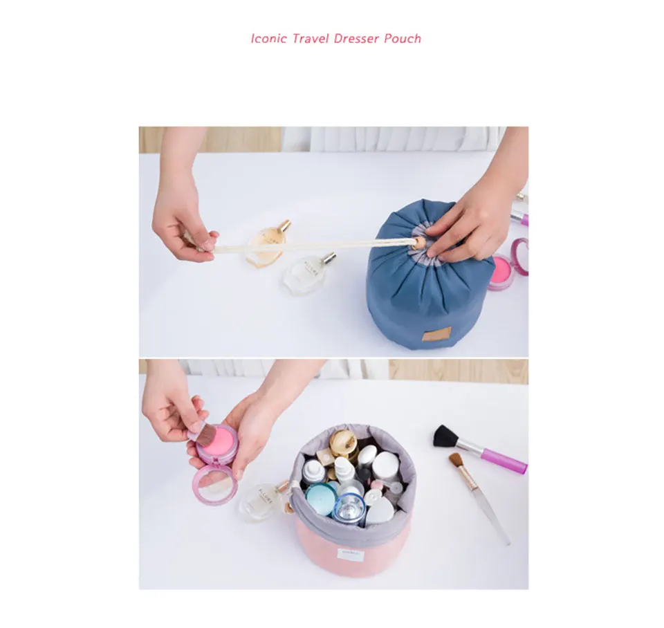 large capacity Desktop Round Cosmetics B:Multifunction Make Up Shrinkable Storage Bags