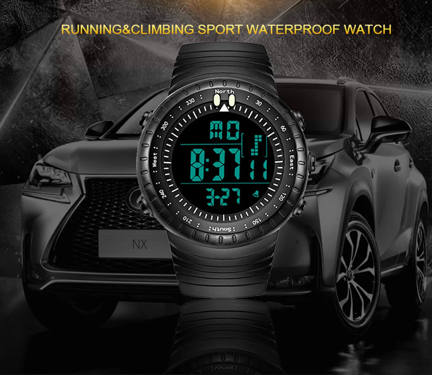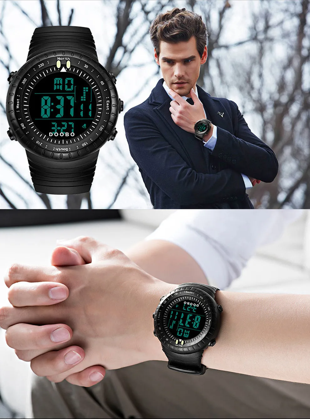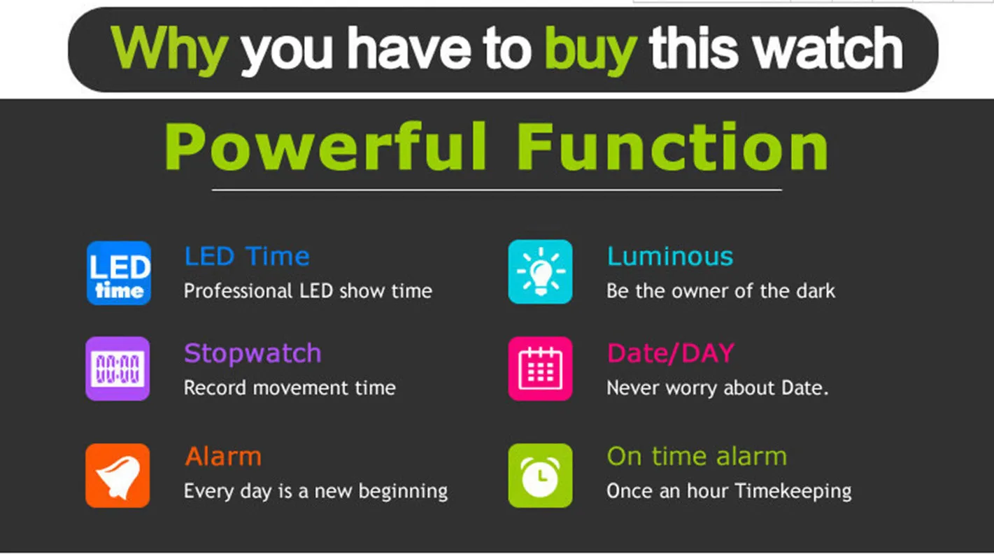 상품 내용 패션 남성 LED 디지털 날짜 스포츠 군사 고무 쿼츠 시계 알람 방수 시계: