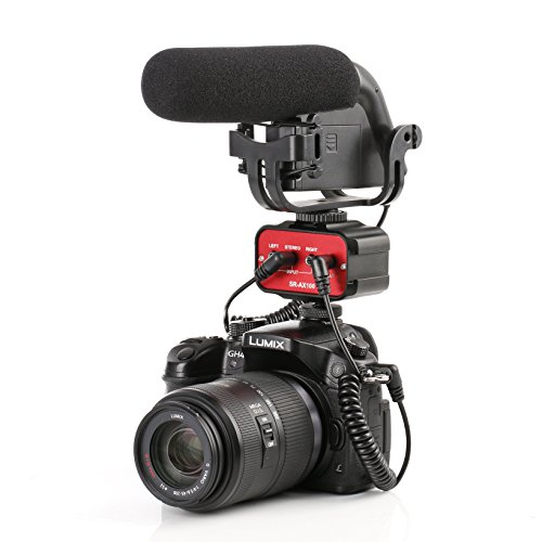 Saramonic SR-AX100 2-Channel Audio Mixer Features One 3.5mm (1/8") stereo and two 3.5mm (1/8") mono inputs, One 3.5mm (1/8") stereo output, Dual audio control knobs; Mono/Stereo switch