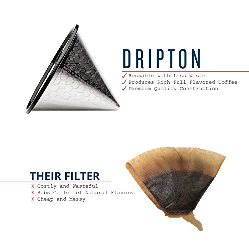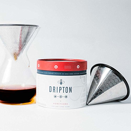 Pour Over Coffee Filter - 3rd Generation - Brew the Best Out of Your Coffee - Stainless Steel Reusable Cone Dripper. Made for Chemex Hario V60 and other Coffeemakers. HoneyCone by Dripton