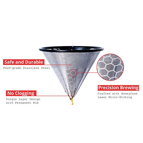 PERFECT YOUR DRIP: Craft a better brewing experience with this 100% reusable, food-grade stainless steel coffee filter. Each filter is precision laser-cut with the signature HoneyCone pattern which ensures durability and a slow, even steeping of your coffee grounds.