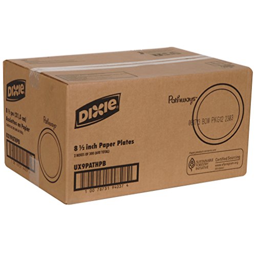 Dixie UX9PATHPB Pathways Paper Plates in Dispenser Box, 8.5" Diameter (2 Packs of 300)
