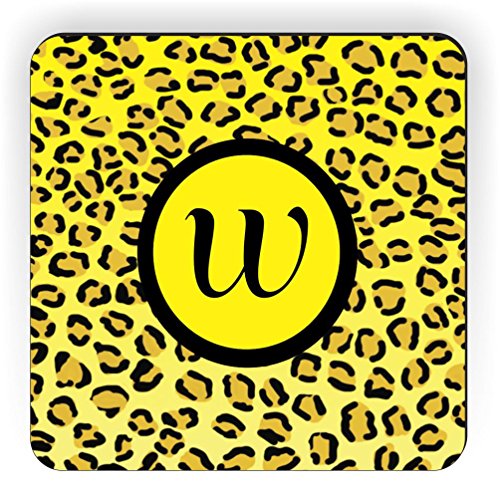 Rikki Knight Letter "W" Initial Yellow Leopard Print Monogrammed Design Square Fridge Magnet