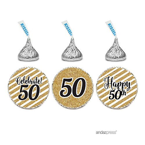 Andaz Press Milestone Chocolate Drop Labels Trio, Fits Hershey's Kisses Party Favors, Celebrate 50, 50th Birthday or Anniversary, 216-Pack, Printed Gold...