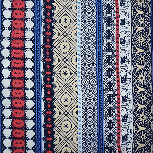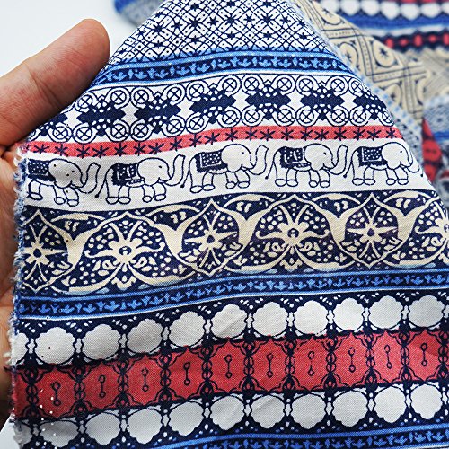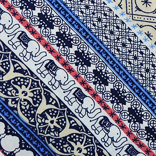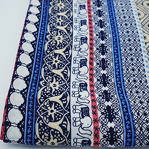 Noil Poplin Fabric By TREECRAFT 55" x 39" (140cm x 100cm) | Patchwork DIY Sewing Scrapbooking [Bohemian Elephant Stripe Folk]