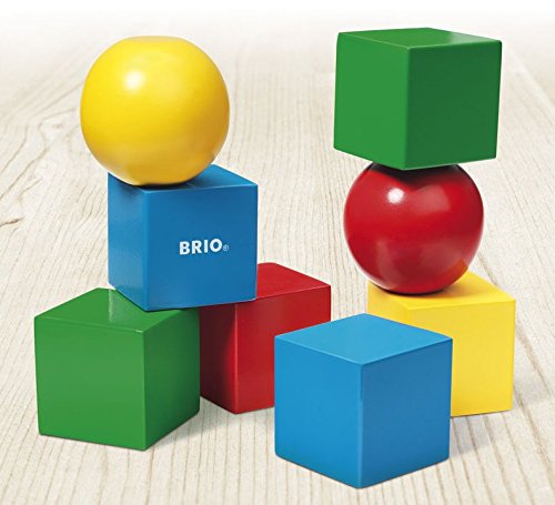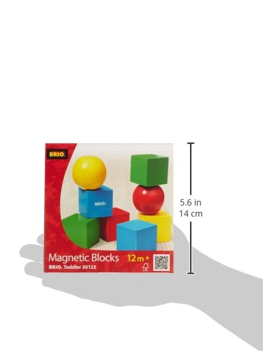 BRIO Magnetic Building Blocks Stack them up! Take them apart! Feel how the pieces fit together. These wooden blocks and spheres from BRIO have built-in magnets that help children discover enjoyable new ways to play. Contains 6 wooden blocks and 2 balls to stack and join together. Block height: 1.6 inches. Age: 12+ months