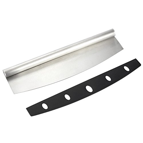 This is must have kitchen utensil for pizza lovers. With this pizza rocker, you'll be able to slice pizzas faster and with less effort than ever before. Just four quick cuts and you've got eight slices of pizza! Unlike traditional roller cutters, this rocker blade does not push off toppings like roller cutters do. It's also made of a single piece of stainless steel, which makes it extremely durable and very easy to clean. Includes a plastic sheath to prevent accidental injuries and scratches. Measures 13.7 x 1 x 3.7 inches.
