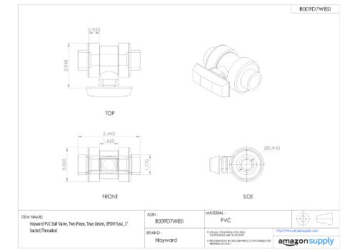 Hayward PVC Ball Valve, Two Piece, True Union, EPDM Seal, 1" Socket/Threaded