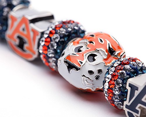 Show your Auburn Tigers some love with this seven piece charm bracelet! Includes three stainless steel bead charms and four Austrian crystal bead charms. Officially licensed jewelry by Auburn University. Shop with confidence, Auburn University has an automatic lifetime product guarantee and free return shipping if necessary!