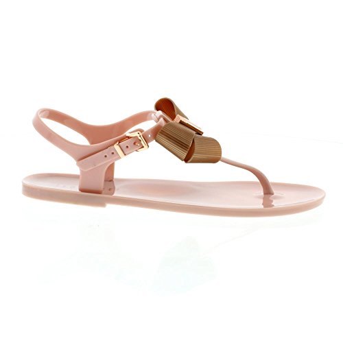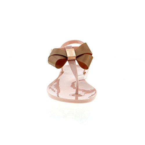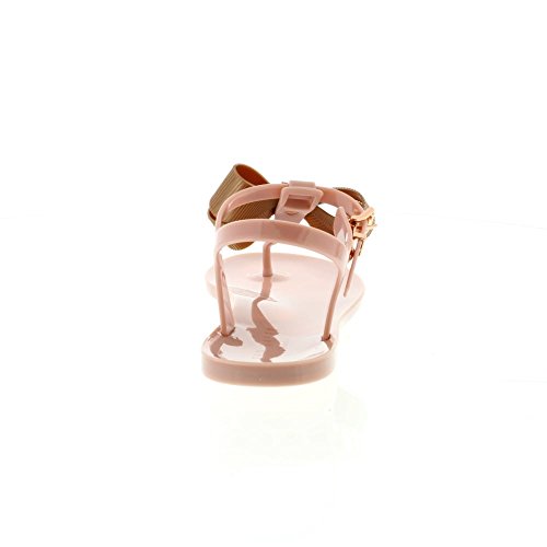Product DescriptionA pair of toe-post jelly sandals with an adjustable ankle strap with a rose gold dainty buckle. Featuring an eye-catching bow on the toe post and a textured sole.0