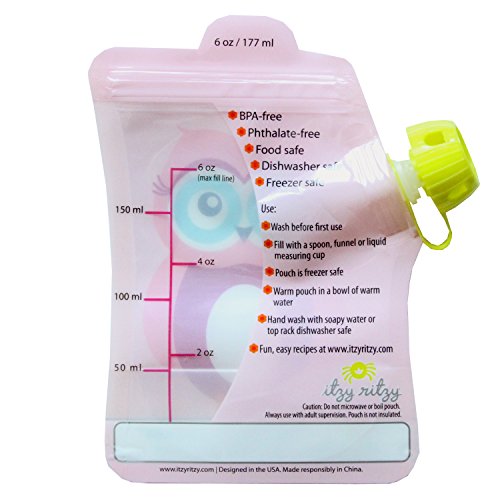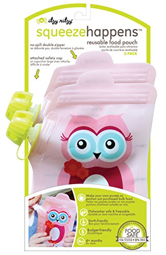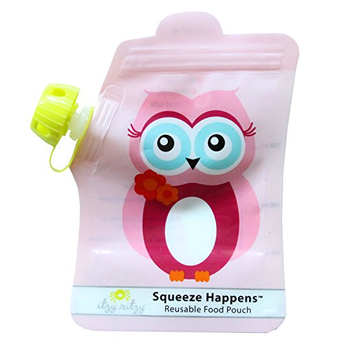 ITZY RITZY SQUEEZE HAPPENS REUSABLE FOOD POUCHES, PINK OWL, 6 OUNCE