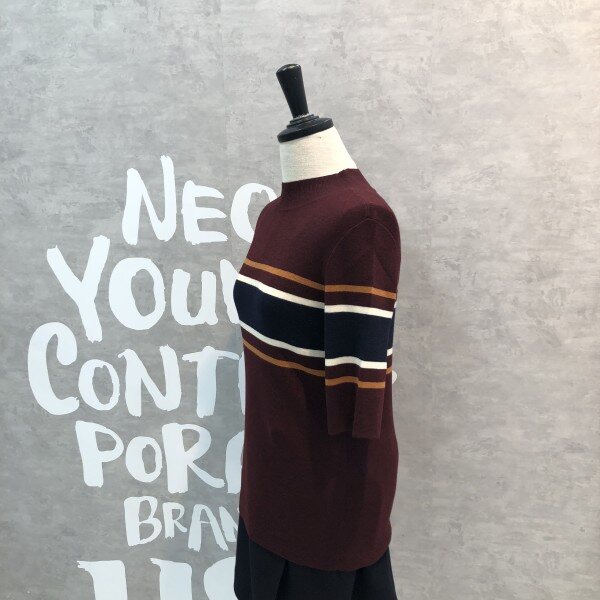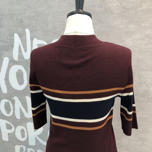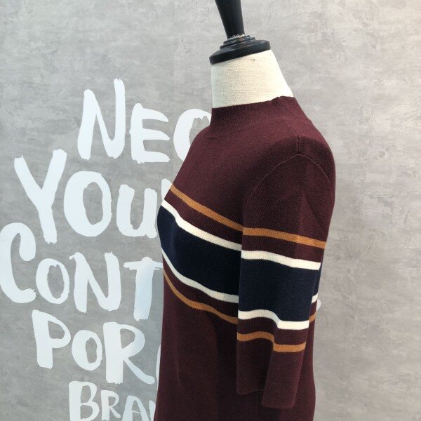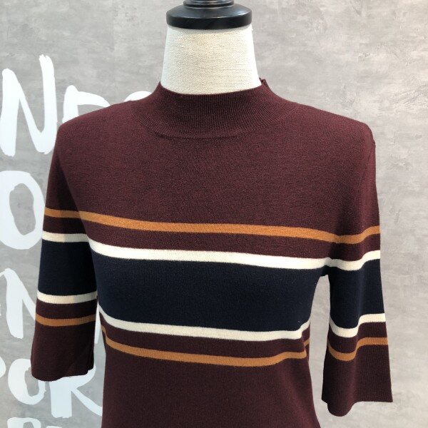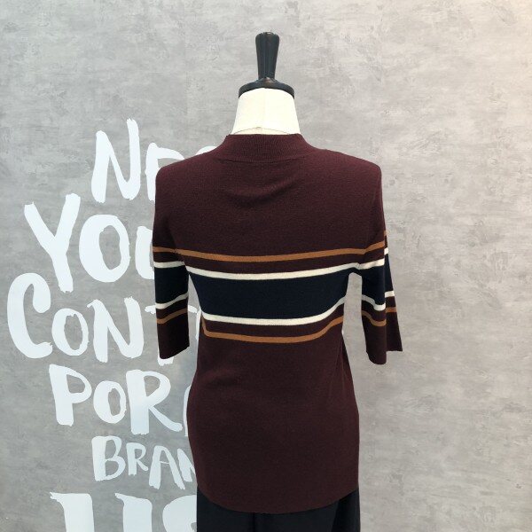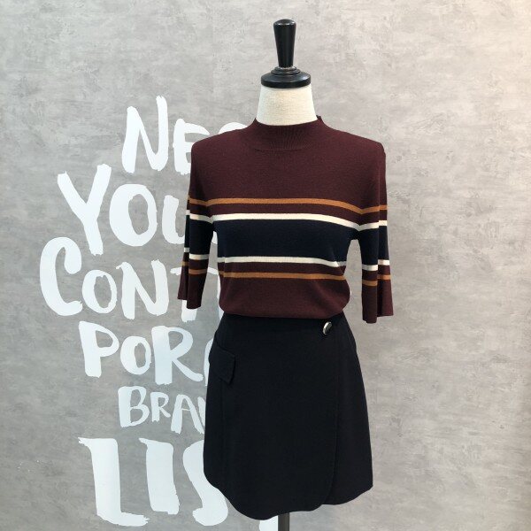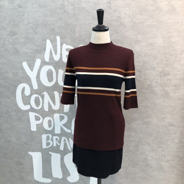 여성스러운 슬림핏 실루엣이 돋보이는 세련된 컬러 믹스 스트라이프의 풀오버입니다