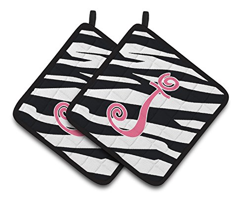Caroline's Treasures Monogram Initial J Zebra Stripe & Pink Pair of Pot Holders CJ1037-JPTHD, 7.5HX7.5W, Multicolor