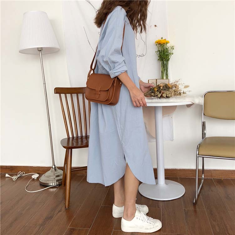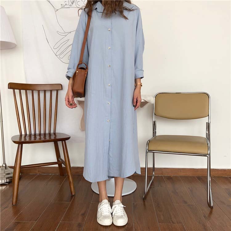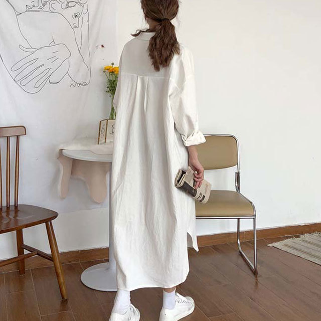 シンプルなこなれ感!ロングシャツワンピース。
