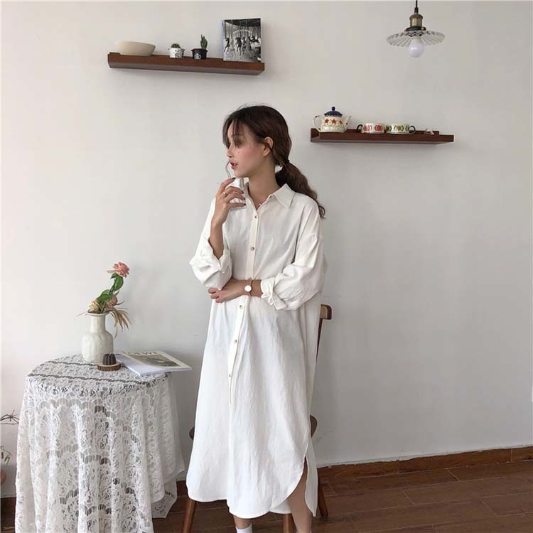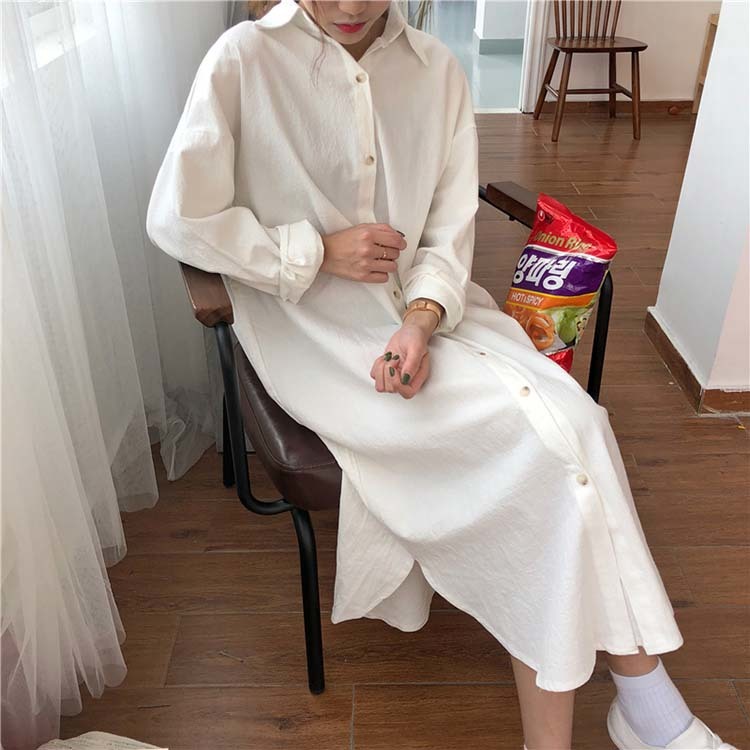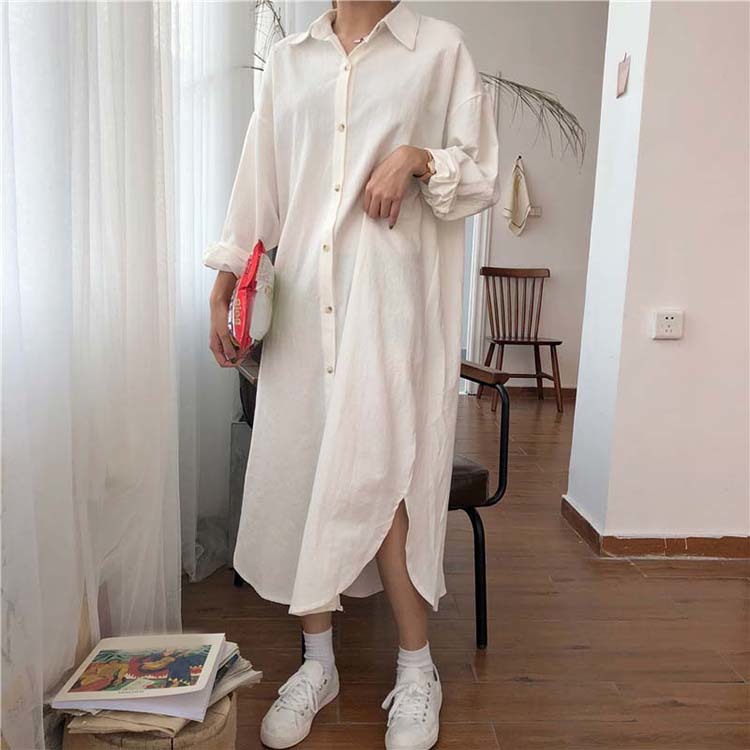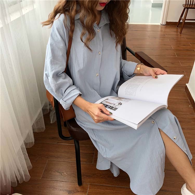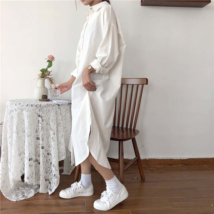 ロング シャツ ワンピース レディース オーバーサイズ 無地 ブラウス ガウン 羽織り
