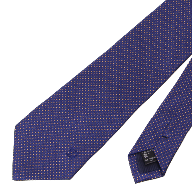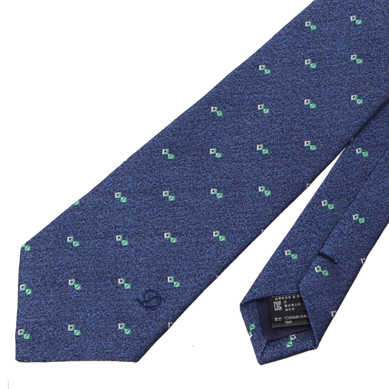 기하학적인 조직바닥과 대검 상단 포인트 삼색자수 솔리드 넥타이