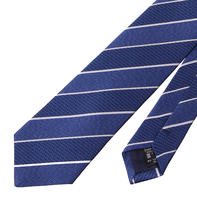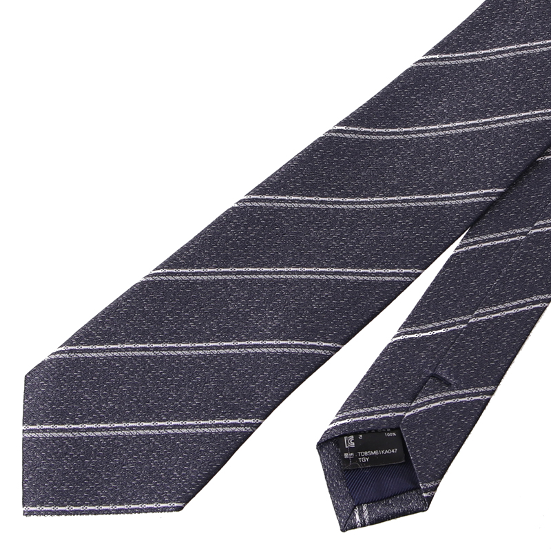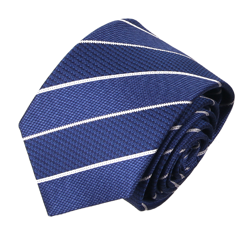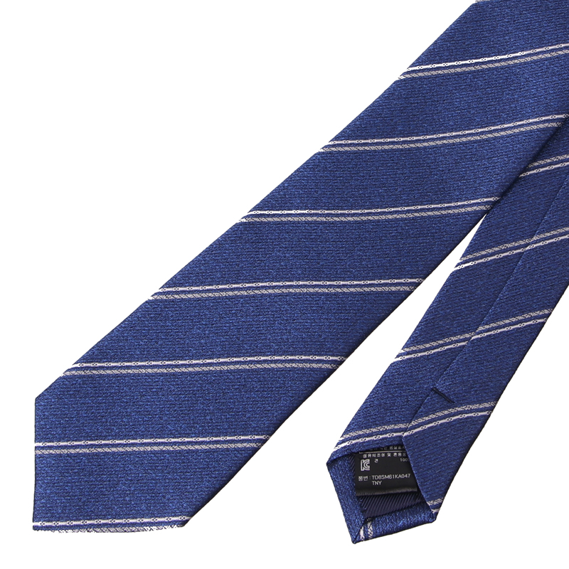 조직감이 돋보이는 블럭 스트라이프와 화이트 스트라이프가 조화를 이룬 넥타이