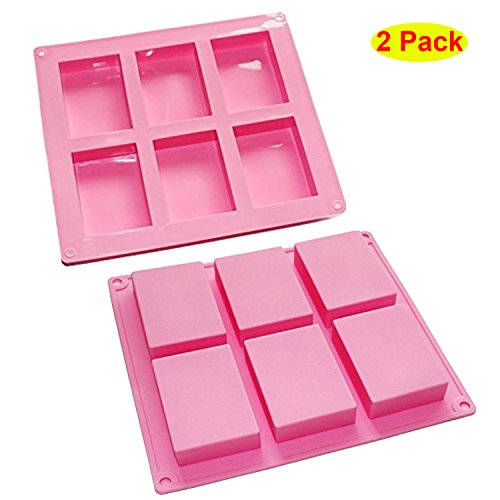 HOSL 2 Pack 6-cavity Plain Basic Rectangle Silicone Mould for Homemade Craft Soap Mold, cake mold, Ice cube tray
