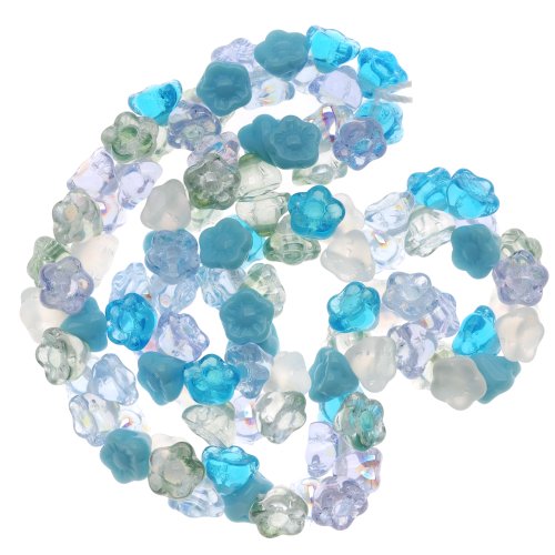 Beadaholique Czech Glass Flower Drops 100-Piece Beads, 7mm, Aqua Blue Serenity Color Mix