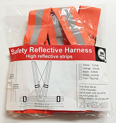 Studio : 360 USA INC. Publisher : 360 USA INC. Binding : Misc. Product Description 360 USA Inc. High Reflective Safety Harness "Neon Orange". Stretchable elastic fabric. Easy adjustable buckle. For running, cycling, walking any other outdoor night sport activities. High Reflective strips. Harness weight 5 oz. One size fits all. See drawing for size. Safety sport gear, reflect lights at night. 0