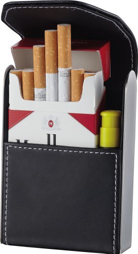 Studio : Visol Publisher : Visol Product Description Take your smokes in style with this stylish cigarette pack holder, the Bolivia. It makes a statement with its sleek and smooth black leather accented with white threads. It can hold a regular sized cigarette pack and slim lighter. 0