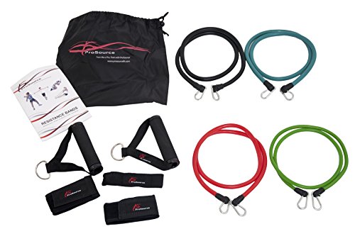 No gym? No problem! The ProSource Stackable Resistance Bands offer a full-body workout set with amazing versatility. The 11-piece set includes four heavy duty latex bands ranging from 5 to 20 pounds, 2 ankle cuffs, a door anchor, exercise guide and carrying bag. High quality carabiners allow you to combine bands for up to 14 levels of resistance. Great for at-home use, rehabilitation, outdoor workouts, travel, or daily gym workouts. Perform everything from chest presses to shoulder raises to leg extensions with just 4 bands. No more having to choose just one weight or resistance level for a limited workout – this set has everything you need to stay in shape from home!