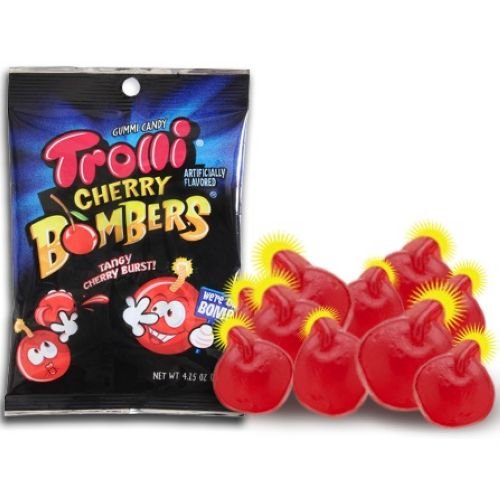 -. Title : Trolli Cherry Bombers Gummy Candy, 4.25 Ounce Bag, Pack of 12