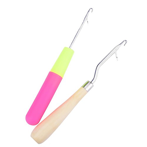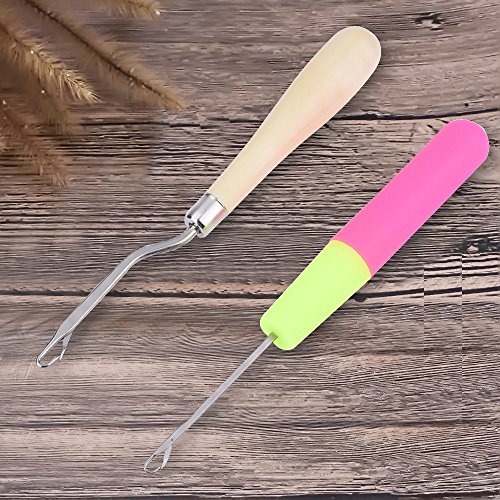 eBoot Wooden Bent Latch Hook Tool and Plastic Latch Hook Crochet Needle, Set of 2