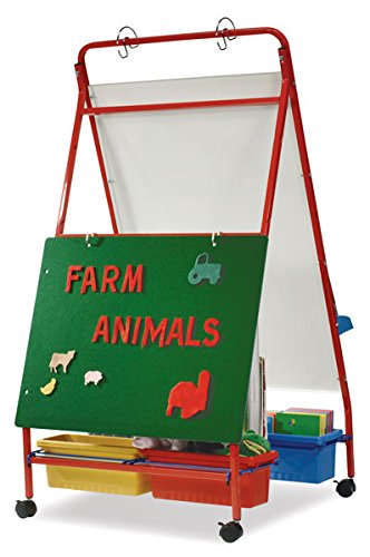 -. Feature : 24" × 32" (61 cm × 81 cm) adjustable felt board / Four small tubs for storing supplies, a Snap-On pad of chart paper with accessory hooks, and four 2" (5 cm) locking casters for mobility and stability. / Measures 57"H × 30"W × 28"D (145 cm × 76 cm × 71 cm)
