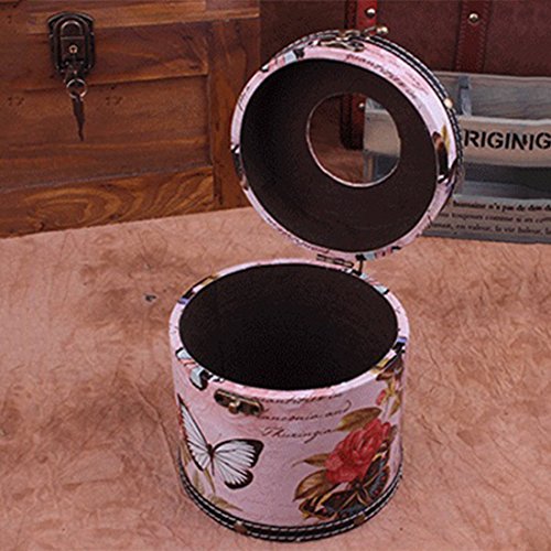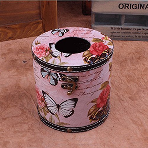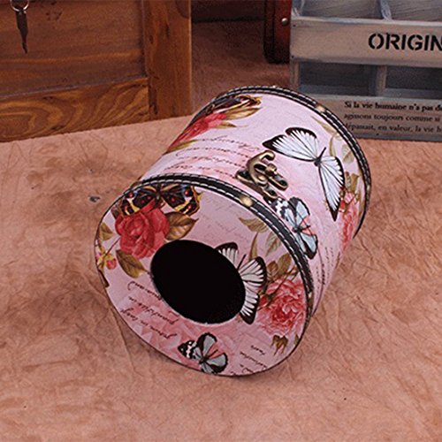 -. Title : Tissue Box, WOLFBUSH Butterfly and Rose Desgin Round Leather Tissue Box Roll Paper Napkin Holder