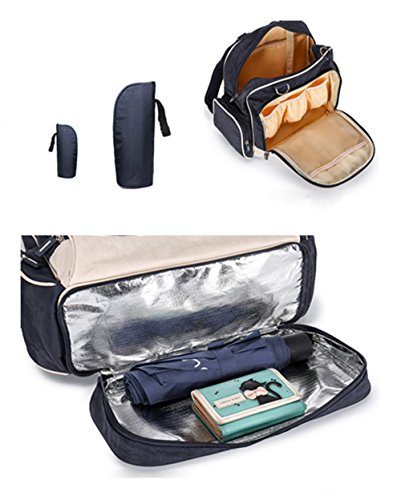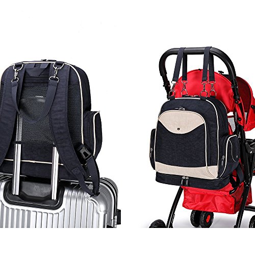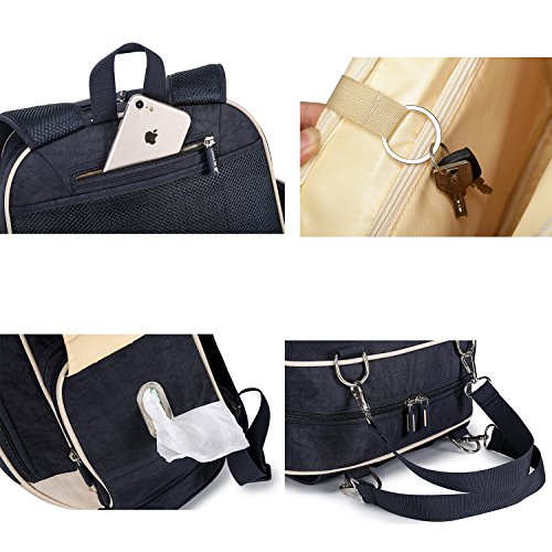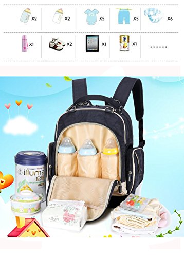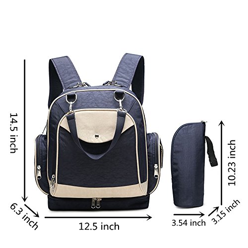 Mooxury Diaper Bag Multifunction Travel Storage Backpack with Stroller Straps and Insulated Bottle Tote Bag - Navy Blue