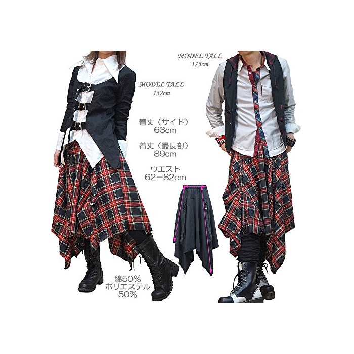 원본상품명: Hippies (ヒッピズ) スカト ひざ丈 V系 パンク モド アシンメトリ アレンジ 55-0305 BC
