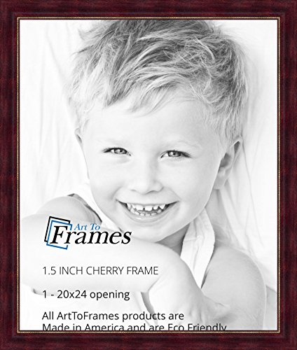 ArtToFrames 20x24 inch Cherry Stain with Gold Beads Wood Picture Frame, WOM7515-20x24