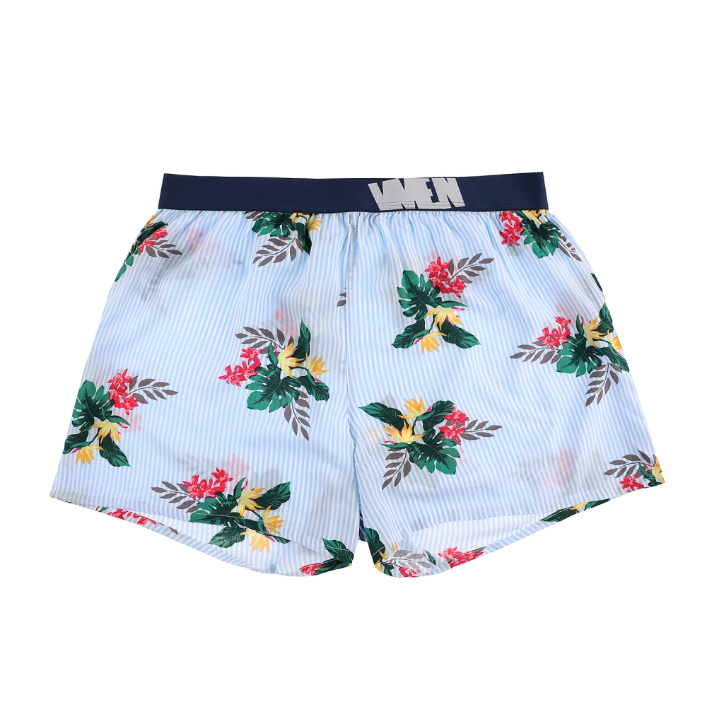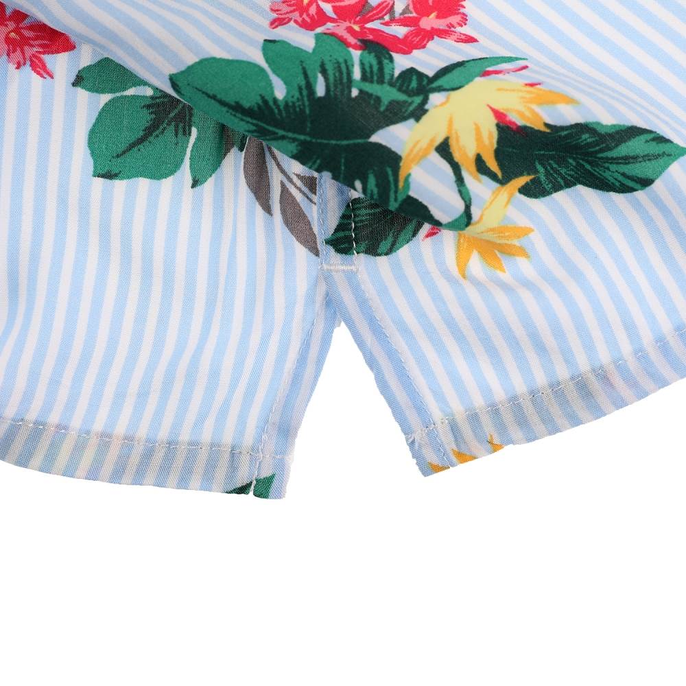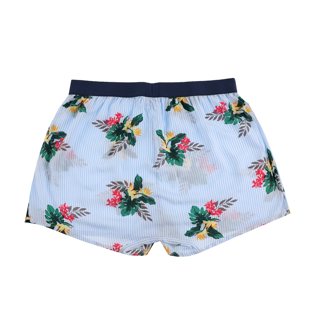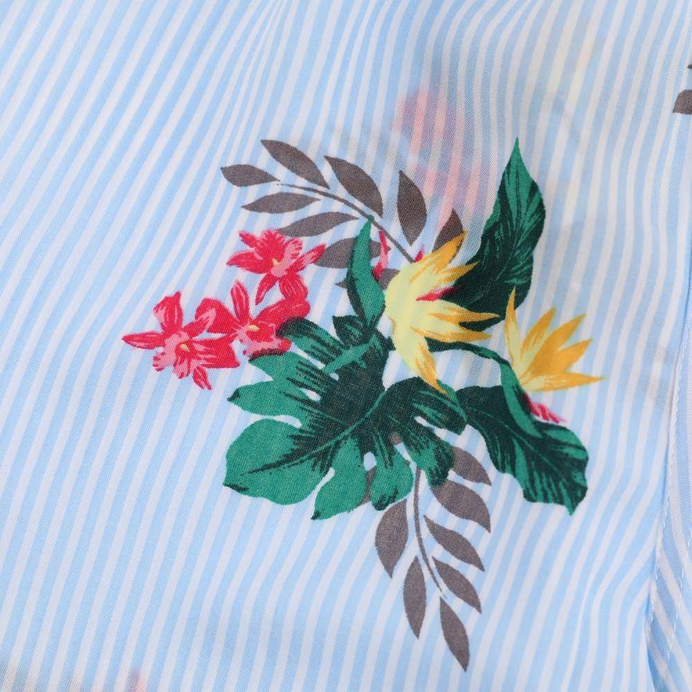 블루 스트라이프에 하와이안 빅플라워가 화려한 느낌.