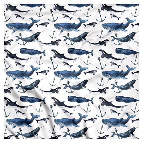(Ambesonne)/Accessories/Cold Weather Accessories/DIRECT FROM USA/Narwhal Bandana by Ambesonne, Watercolor Narwhals Orcas and Blue Whales with Anchors Arctic Fau...