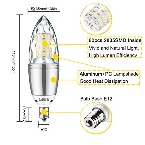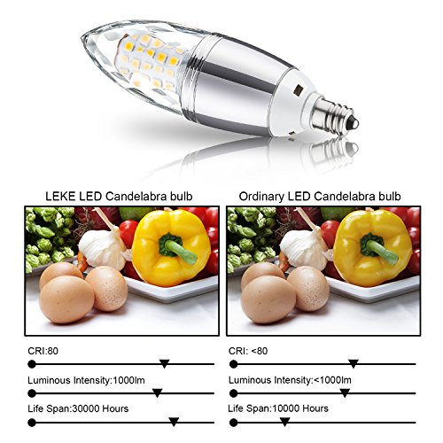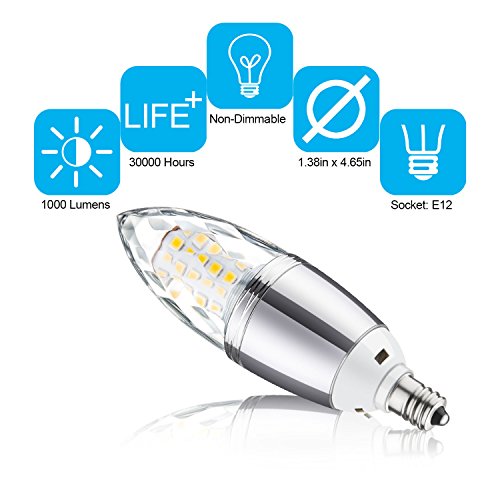 - ☞ Excellent Performance→Non-Dimmable LED Candelabra Bulb,E12 Candelabra Base, Torpedo Shape Bullet Top, Warm White 3000K,1000 Lumens, 60pcs 2835SMD Inside, Light Pattern Same as Incandescent Bulbs