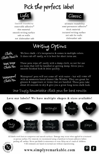 - Title : Simply Remarkable Reusable Chalk Labels - 60 Flower Shape 1.35" Adhesive Chalkboard Stickers, Light Material with Removable Adhesive and Smooth Writing Surface. Can be Wiped Clean and Reused, For Organizing, Decorating, Crafts, Personalized Hostess Gifts, Wedding and Party Favors